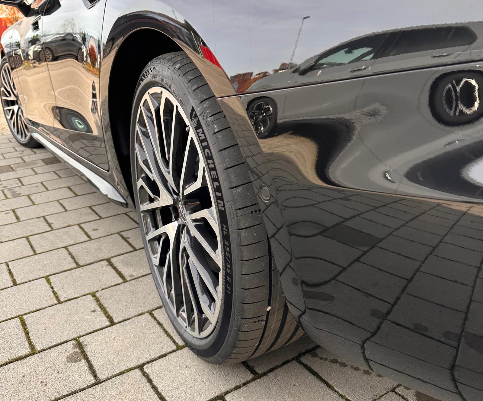 - LM-Felgen 8,5×21 (Vielspeichen-S, Schwarz-Metallic, glanzgedreht, Audi Sport)